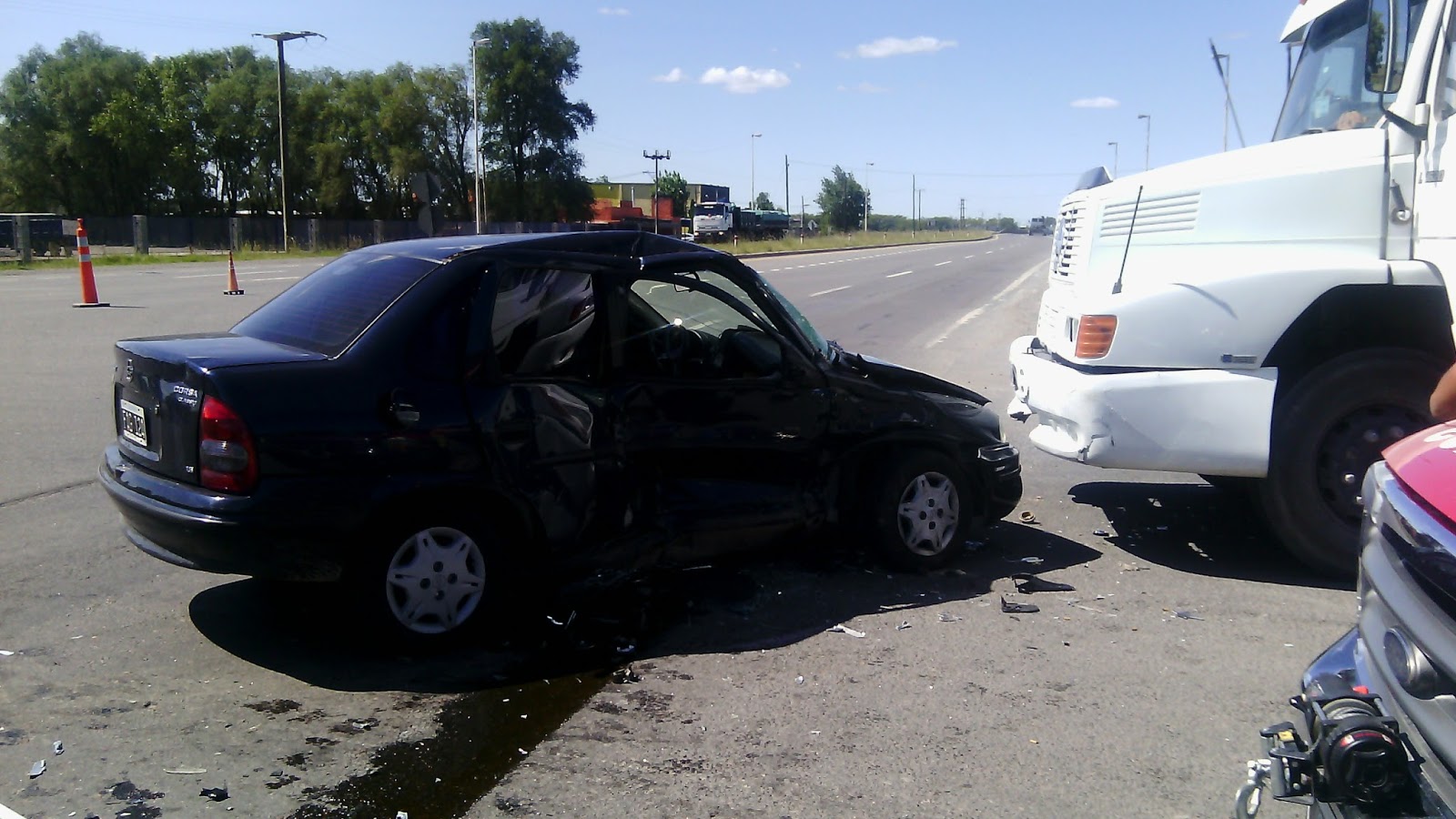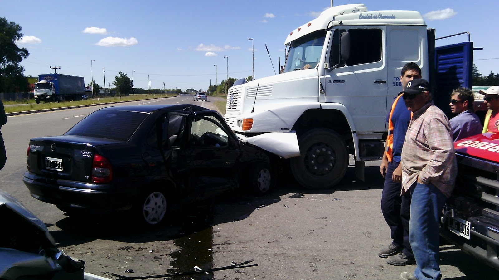un Chevrolet Corsa chocó con Fiat Uno y terminó debajo del camion. La